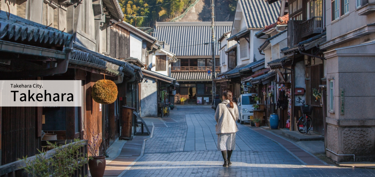 “Takehara”, started in the Heian period, as a manor of the Kyoto Shimogamo shrine, flourished in the latter stages of the Edo era due to its salt and liquor production. Even to this day, it is famous for the many districts in which the towns are conserved, with many temples, mansions, and liquor production facilities, and the street scene gives you a feel of the atmosphere of the time, bursting with life.